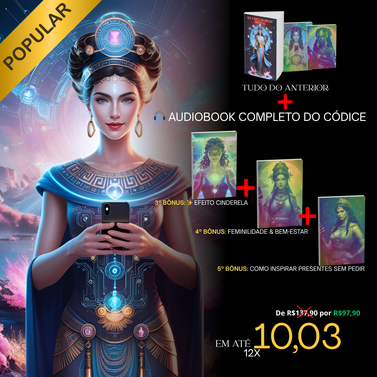 Ninfa (Mais popular): tudo do Sacerdotisa + audiobook, “Cinderela express” (look & atitude em 10 min), rituais anti-ansiedade, sinais que inspiram convites e mimos.